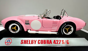 - Brand new 1/18 scale diecast car model of 1965 Shelby Cobra 427 S/C Pink with White Stripes with Printed Carroll Shelby Signature's on the Trunk die cast model car by Shelby Collectibles.