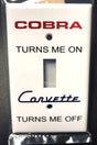 "Cobra Turns Me On, Corvette Turns Me Off" Light Switch Plate. White with Red, Blue and Black Lettering