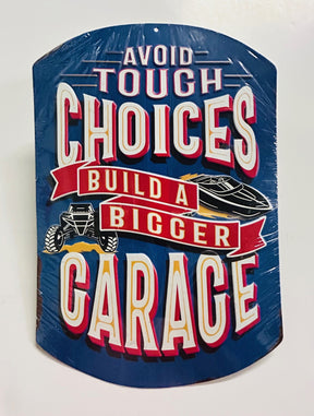 " Avoid Tough Choices Build a Bigger Garage" 15" x 10" Sign in Red, White and Blue