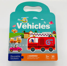 Vehicles Reusable Sicker Book with Handle, 30 Pieces. 12" x 9" Ages 3+